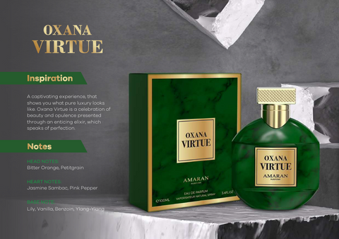 A captivating experience, that shows you what pure luxury looks like. Oxana Virtue is a celebration of beauty and opulence presented through an enticing elixir, which speaks of perfection.