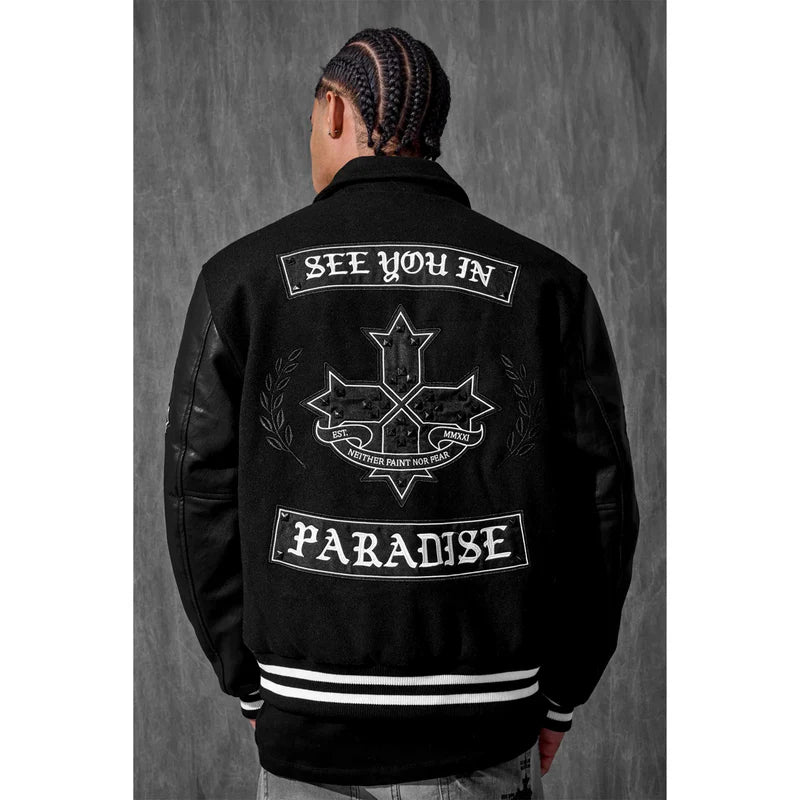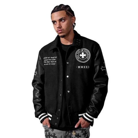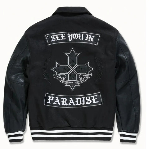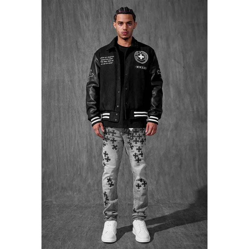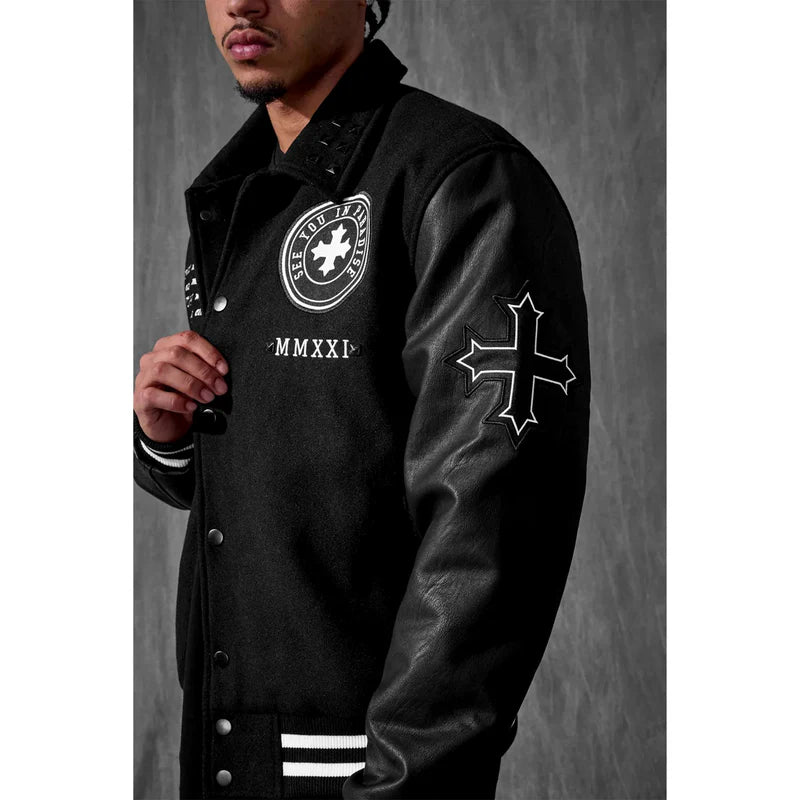 The Jordan Craig Syip Varsity Jacket combines a polyester blend body with signature varsity details. Complete with front button closure, bold graphics, and ribbed finishes, this jacket delivers modern street style.