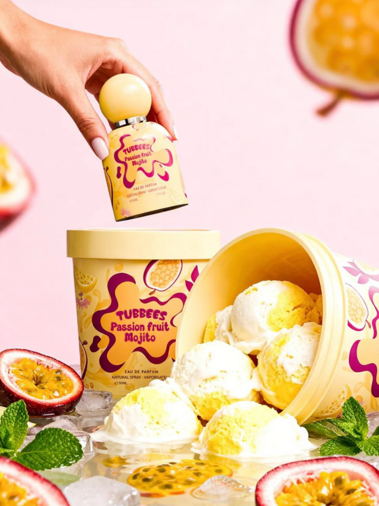Experience a refreshing getaway with Tubbees Passion Fruit Mojito by Grandeur. Tart passion fruit and tropical fruits blend with mojito freshness, while orange blossom and jasmine add a sunny touch. Indulge in this 50ml bottle of exotic flavors for a burst of tropical escape.
